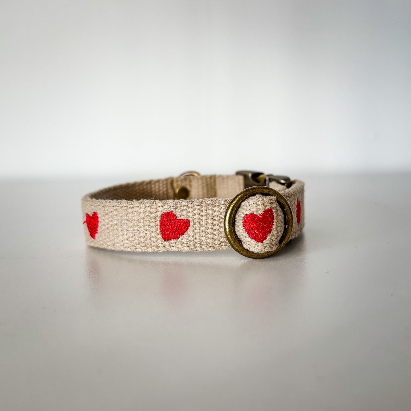Das zarte Herzmotiv wird mit viel Liebe von Hand eingestickt und macht das Halsband zu einem ganz besonderen Hingucker.